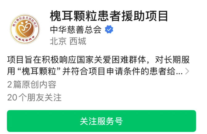 槐耳颗粒患者援助项目是中华慈善总会接受启东盖天力药业有限公司捐赠设立的资金援助项目。旨在积极响应国家关爱困难群体,实现精准帮扶的号召,对长期服用“槐耳颗粒”并符合其适应症的中国大陆地区患者给予一定的现金援助,帮助中低收入肿瘤患者尤其是困难患者坚持长期服药、阻断肿瘤复发,改善生命质量。